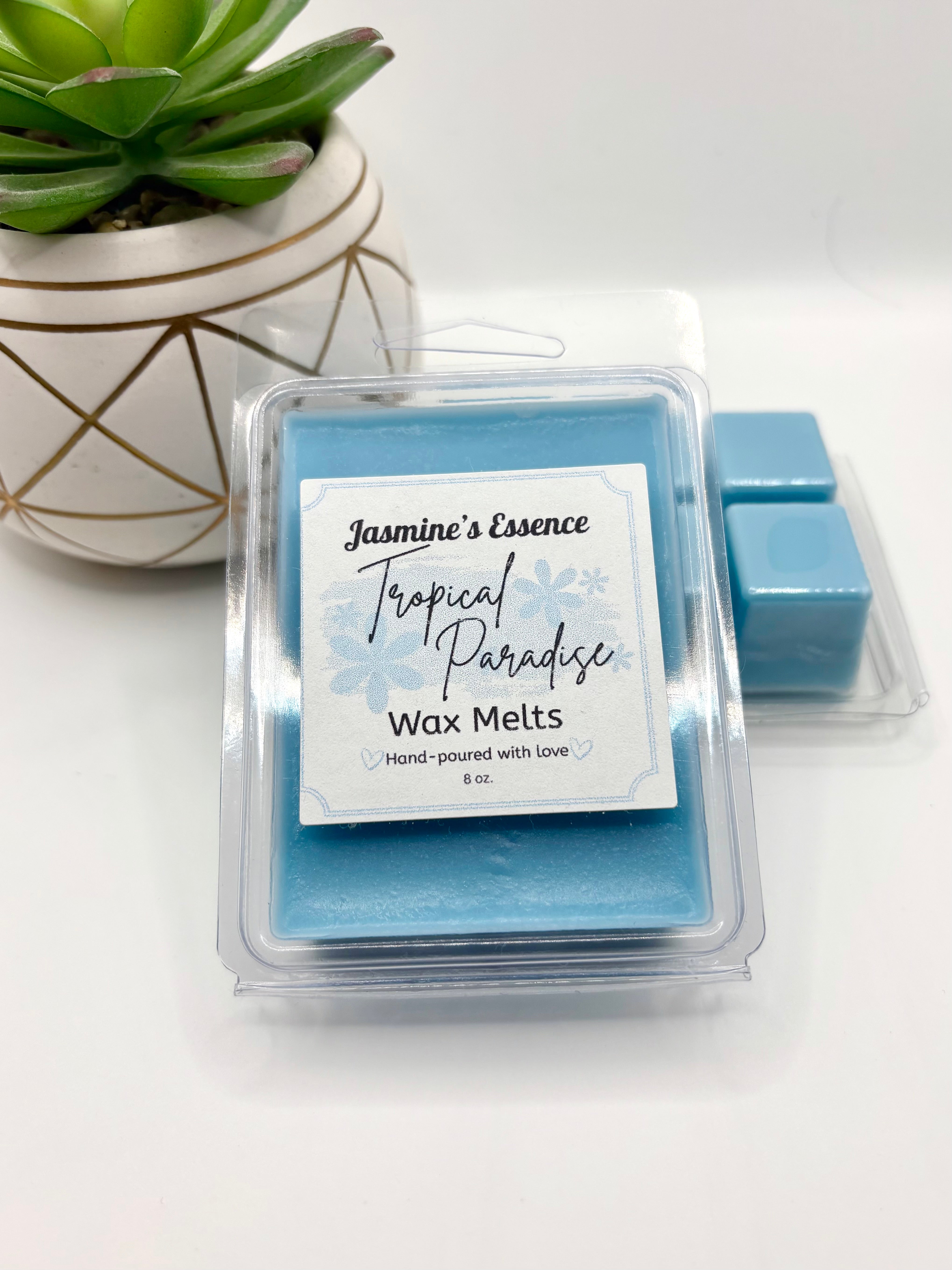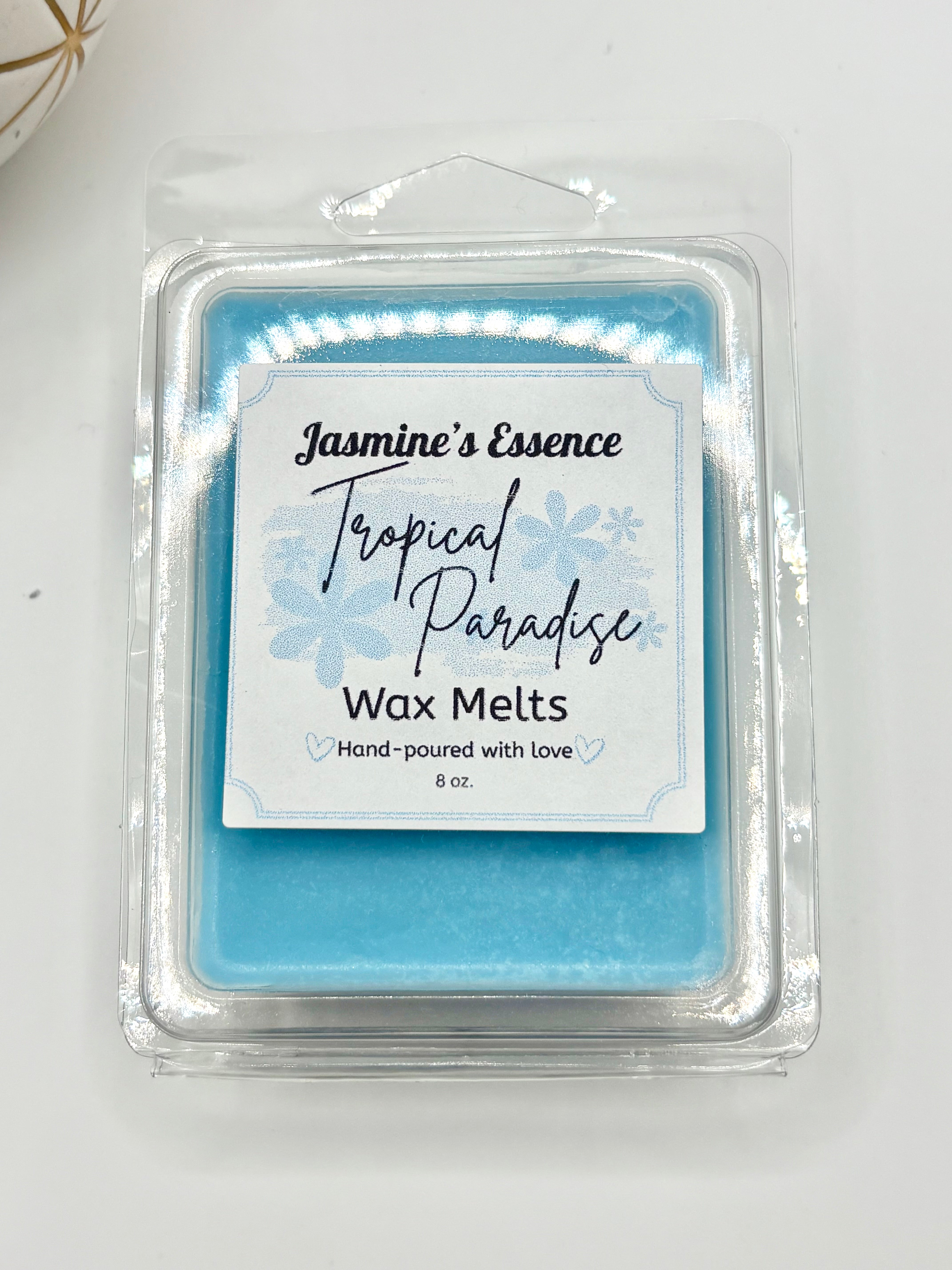 Create a great escape with this Tropical paradise wax melt. With top notes of juicy tangerine, orange peel, and lemon, middle notes of pineapple, tropical coconut, and citrusy orange, and sugar and rum base notes, this melt explodes with fruity fragrance. Made from high-quality soy wax, these melts release a captivating aroma, creating a warm and inviting ambiance in any room. Perfect for use in wax warmers, these melts offer a flame-free and long-lasting way to enjoy your favorite fragrances.