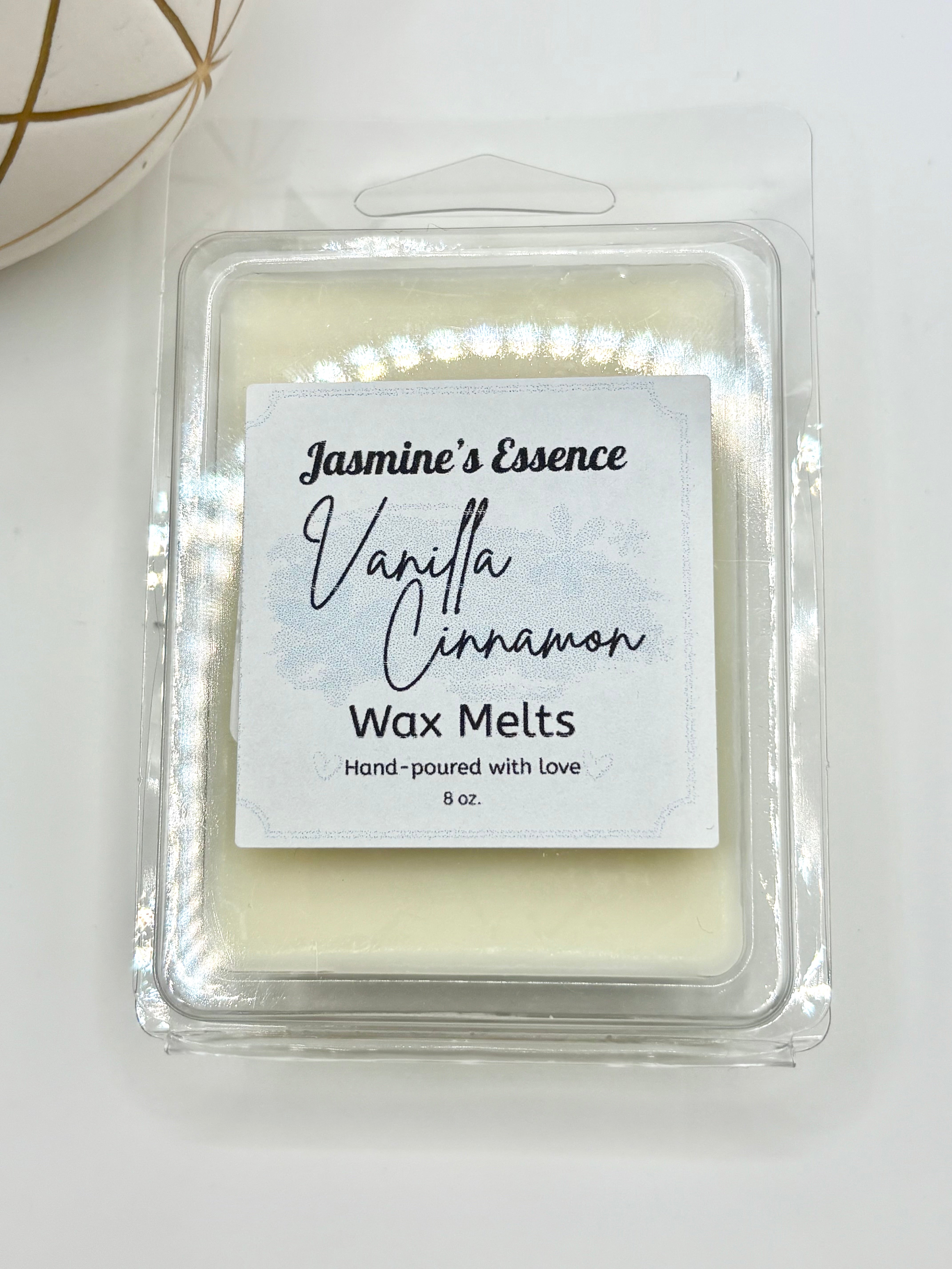 This Vanilla Cinnamon wax melt combines the full bodied scent of spicy cinnamon with the sweet and creamy accords of vanilla. With top notes of clove and cinnamon, and a creamy vanilla base, this scent will evoke excitement for fall and the start of the holiday season. Made from high-quality soy wax, these melts release a captivating aroma, creating a warm and inviting ambiance in any room. Perfect for use in wax warmers, these melts offer a flame-free and long-lasting way to enjoy your favorite fragrances.
